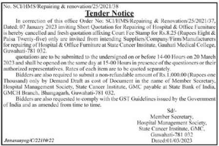 Tender for repairing of Hospital