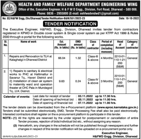 Repairs and Renovation to TLH at Kalaghatgi in Dharwad District