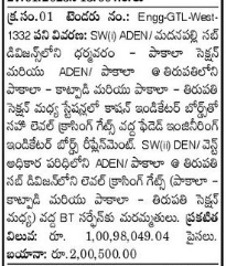 SW(i) Level Crossing Gates including Caution Indicator Boards at Stations between Dharmavaram Pakala Section of ADEN / Madanapalli Sub Division and Pakala – Katpadi and Pakala – Tirupati Section of ADEN/ Pakala @ Tirupati Replacement of faded engineering indicator boards at SW(1) Repairs to BT Surfane at Level Crossing Gates (Between Pakala Katpadi and Pathala Tirupati Section) in ADEN/ Pakala @ Tirupati Sub Division under DEN/ West Jurisdiction.