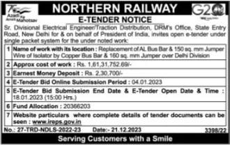 Tender for Replacement of AL Bus Bar & 150 sq. mm Jumper Wire of Isolator by Copper Bus Bar & 160 sq. mm Jumper over Delhi Division