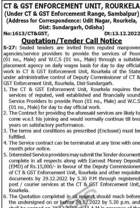 work in CT & GST Enforcement Unit, Rourkela of the State