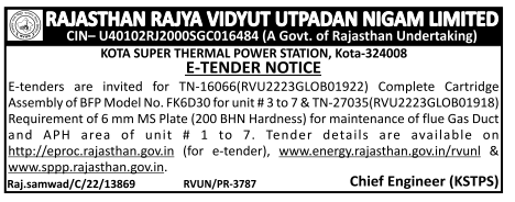 Tender for Requirement of 6 mm MS Plate (200 BHN Hardness) for maintenance of flue Gas Duct and APH area of unit # 1 to 7.
