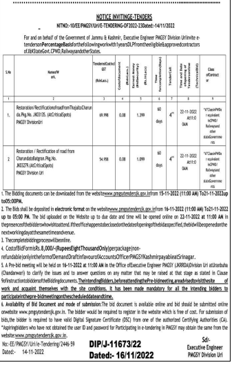 Tender for Restoration/Rectificationofroadfrom ThatChar PNGSY Division