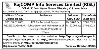 Tender for RFP for Technical Support, Subscription and Maintenance of Existing ORACLE Products for 2 Years.