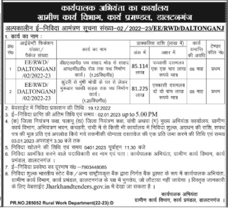 Tender for Road construction from Kundri to Mushi Mochi’s house till Murubar paved road 81.225 works.