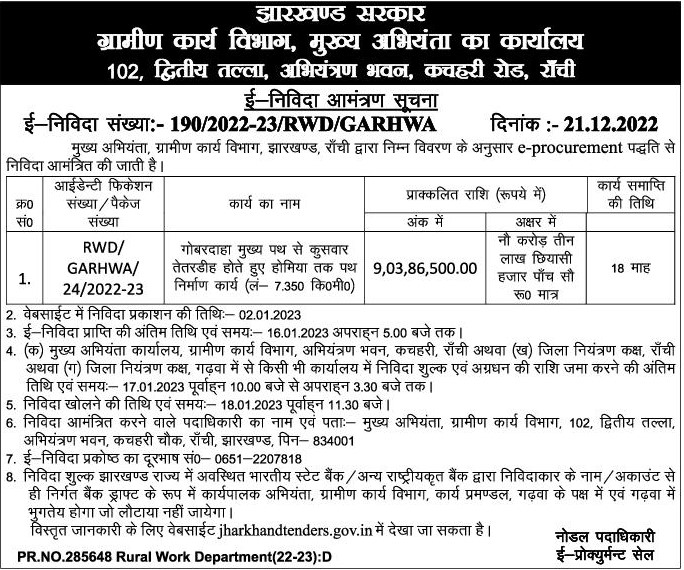 E-Tender Number:- 190/2022-23/RWD/GARHWA