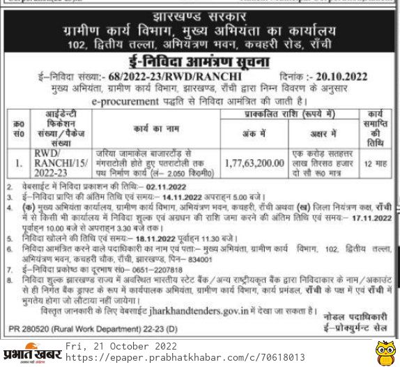 Tender for Road construction work from Jamakel Bazarod to Patratoli