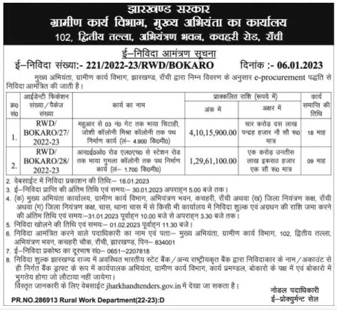 Tender for Road construction work from RWD/ REO Road LH to Station Road up to Bhaya Gugla Colony (1.700 km)