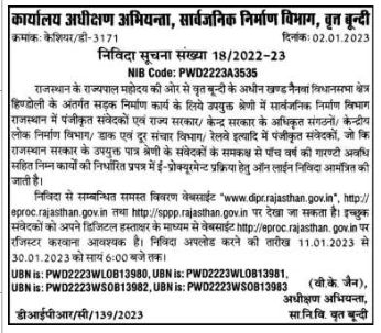 Tender for road construction work under Block Nainwan Vidhansabha Constituency Hindoli, under Vrit Bundi