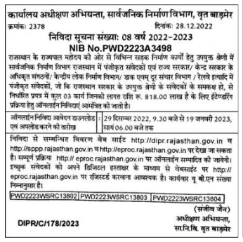 road construction works on behalf of the Governor of Rajasthan, Registered contractors in the Public Works Department Rajasthan and the state government and the central government In authorized organizations / Central Public Works Department / Telecom and Telecom Department / Railway etc.