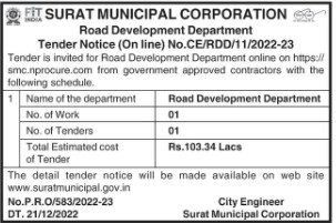 Tender Notice (On line) No.CE/RDD/11/2022-23