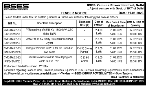Tender for Road Restoration work in cable laying and cable fault in BYPL