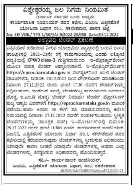 Tender for road works in Hassan taluk under Ettinahole drinking water