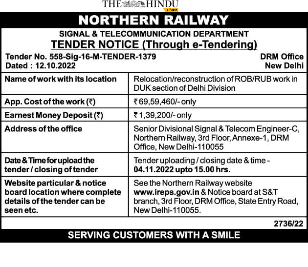 Tender for ROB/RUB work in DUK section of Delhi Division