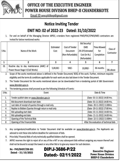 Tender for Routine day to day maintenance (AMC) Power House Stage (Civil Works)