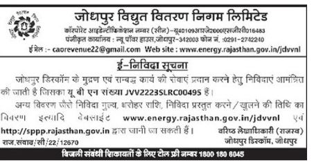 Tender for roviding services of printing and allied work of Jodhpur Discom Whose UBN number is JVv2223SLRC00495.