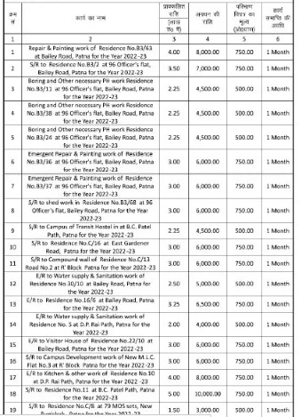 Tender for S/R to Residence No.11 at B.C. Patel Path, Patna for the Year 2022-23