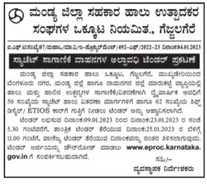 Area | Tender is invited for contract for 50 Nos. of Sachet Milk
