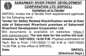 Tender for Safety Related Electrification works at East side of Sabarmati Riverfront premises of Sabarmati Riverfront Development Corporation