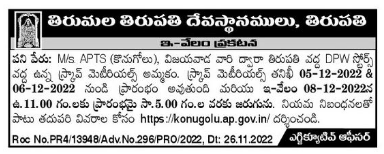 Tender for Sale of Scrap Materials at DPW Stores at Tirupati by M/s APTS (Purchase), Vijayawada. Inspection of scrap materials