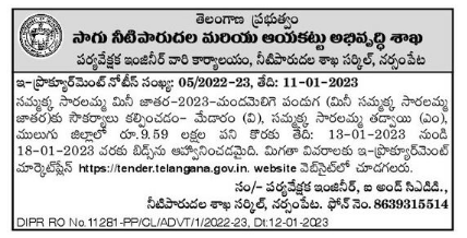 Tender for Sammakka Saralamma Mini Jatara – Facilitation of 2023 Mandamelige Festival (Mini Sammakka Saralamma Jatara) – Medaram (V), Sammakka Saralamma Tadwai (M), Mulugu District