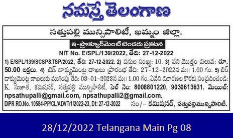Tender for Satthupalli Municipality of 10 works in Khammam District.