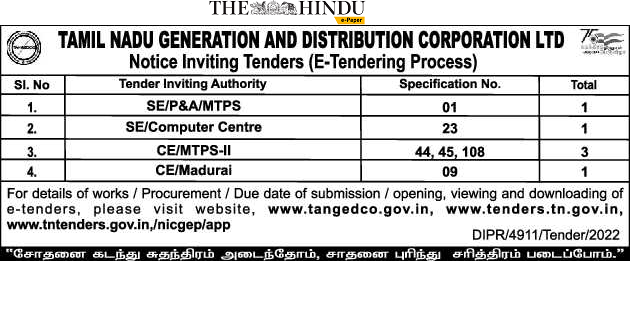 SE/P&A/MTPS, OS/Computer Center, CE/MTPS-II, EC/Madurai