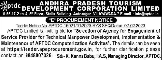 Tender for “Selection of Agency for Engagement of Service Provider for Technical Manpower Development, Implementation & Maintenance of APTDC Computerization Activites”.