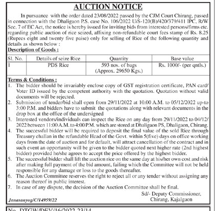 Tender for selling of Rice .
