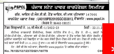 visit website www.pspcl.in on 24.11.2012 at 4:00 PM. Note: Any modification