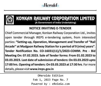 Arcade at Madgaon Railway Station for a period of 9 (nine) years.