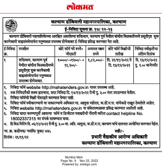 Tender For Shaktidham, Kalyan East | Regarding the availability of manpower through external agencies to start a maternity home in the fixed income here.