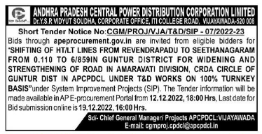 Tender for SHIFTING OF HT/LT LINES FROM REVENDRAPADU TO SEETHANAGARAM FROM 0.110 TO 6/859IN GUNTUR DISTRICT FOR WIDENING AND STRENGTHENING OF ROAD