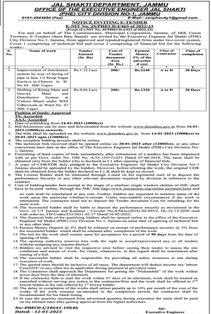 Tender for Shifting of of Rising Main and Main and Rs.0.66 Lacs Rs.1320 A to D 30 Days Gravity Distribution System at Vishwa Bharti under WSS Udheywala in Ward No. 67 JMC Capex