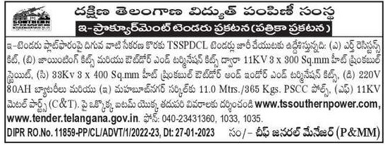 TSSPDCL proposes to issue tenders on e-tender platform for procurement of following: (a) Earth resistance