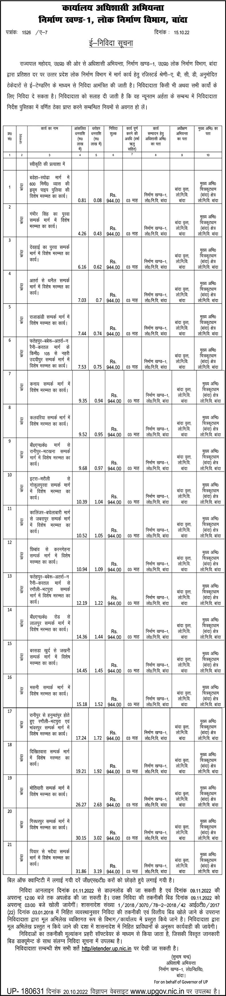 Tender for Special repair work of Gambhir Singh in Purva Sampark Marg.