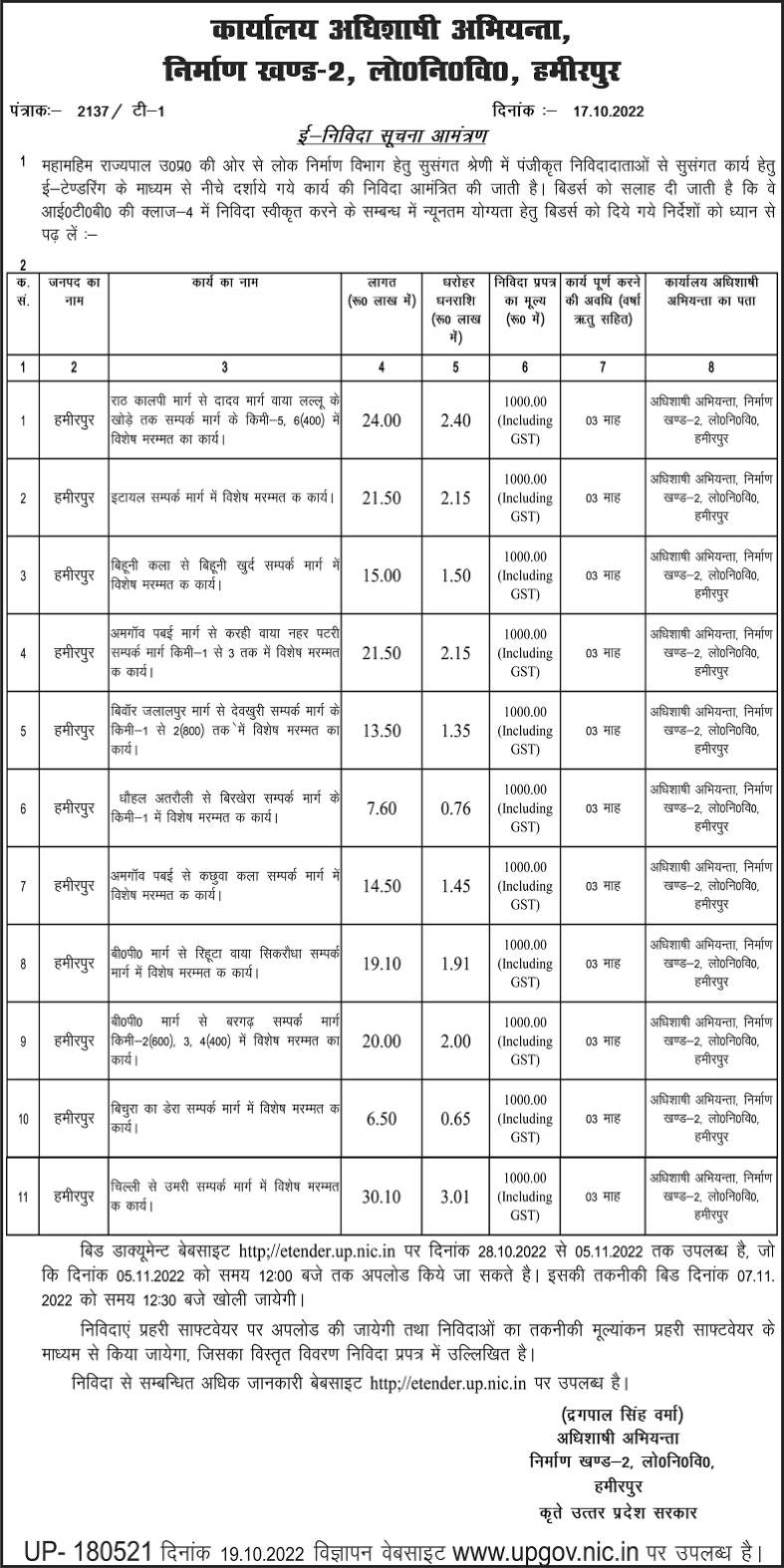 Tender for Special repair works in Bihuni Kala to Bihuni Khurd link road.