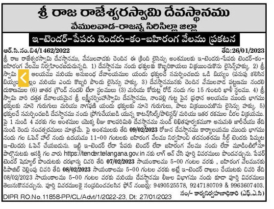 AM in the open hall in front of the Devasthanam office followed by sealed tender PIMMATA e-