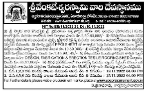Tender for Sri Swami Nandu Gopuram and Anting Nala construction cost Rs. 2,60,02,800/- 2 To provide consultancy services for preparation of France Corical designs and layouts for various development