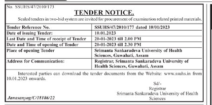 Tender for SSUHS/47/2010/173 Srimanta Sankaradeva University of Health Sciences, Guwahati, Assam Registrar, Srimanta Sankaradeva University of Health Sciences, Guwahati