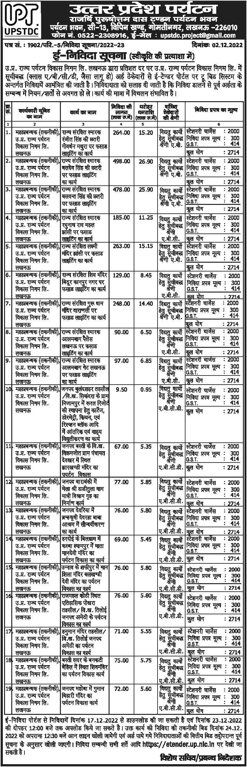 Tender for State Protected Monument Balwant Singh’s Umbrella Per Facade Lighting work