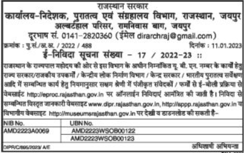 Tender for state Undertakings / Central Public Works Department / Central Government / Archaeological Survey of India etc., through e-bidding process from the registered contractors / firms in the competent category as per rules,