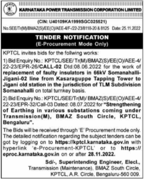 “Strengthening of Earthing in various substations coming under Transmission(M), BMAZ South Circle, KPTCL, Bengaluru”.