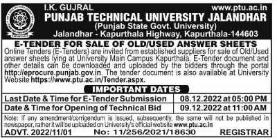 suppliers for sale of Old/Used answer sheets lying at University Main Campus Kapurthala