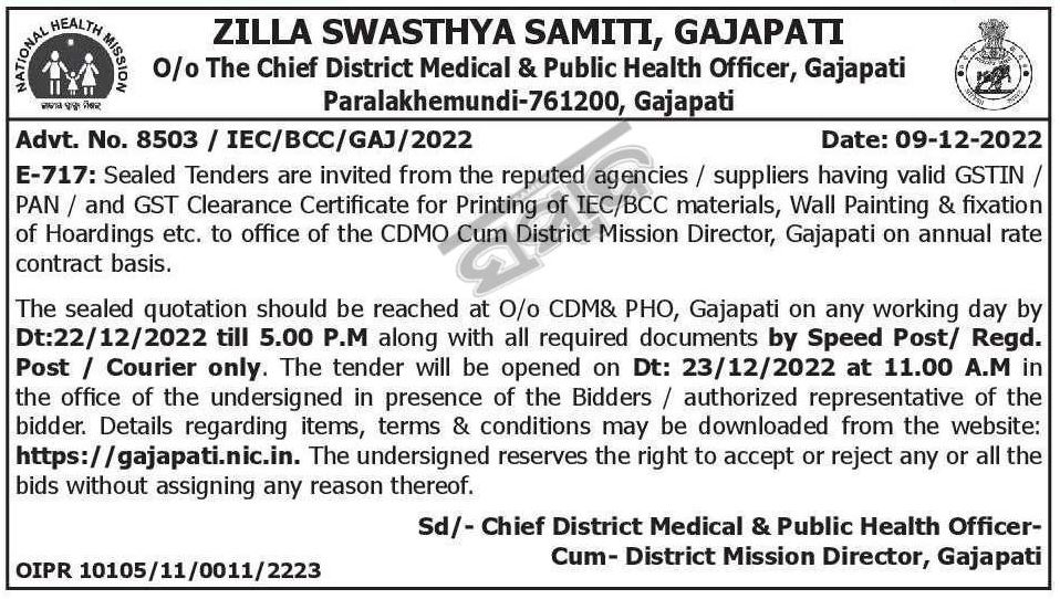 of Hoardings etc. to office of the CDMO Cum District Mission Director, Gajapati on annual rate