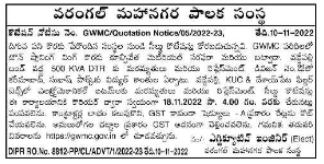 Supply and delivery of demolition material for Town Planning Wing in GWMC premises. Repairs and Replacement of 500 KVA DTH at Vaddepally Und Division