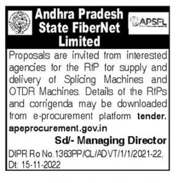 Tender For supply and delivery of Splicing Machines and OTDR Machines
