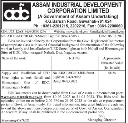 Tender for Supply and Installation of LED Street lights at both Naltali and Bhomoraguri Sites of IDC,