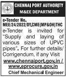 e-Tender is invited for “Supply and laying of various sizes of UPVC pipes”.