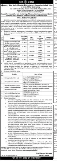 Tender for supply chain management system of drugs, equipment and other goods and services. To ensure timely and proper implementation and construction of various buildings and other infrastructure in accordance with standards, codes and specifications, BMSICL requires services of well qualified and professional project management Category A- Estimated Cost Rs. 200 crores and above